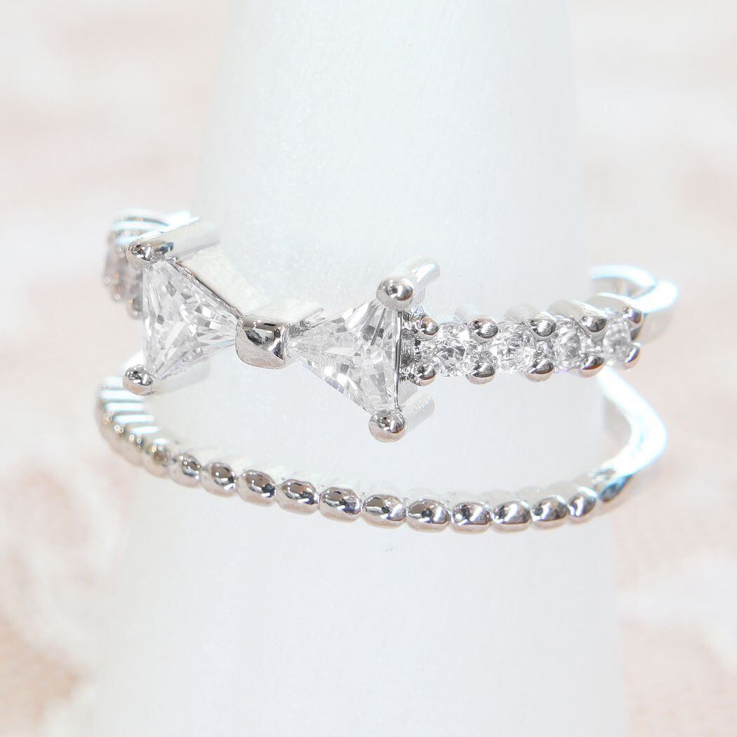 【リボン✳︎2連フリーサイズリング】 ダブルライン.645