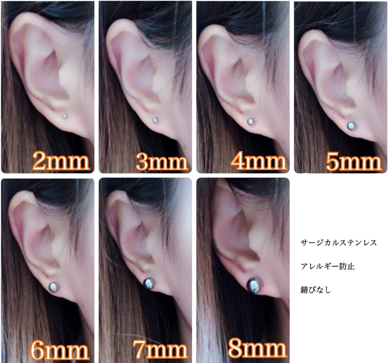 5mmピアス 4mmピアス 3mmピアス 6㎜ピアス 7㎜ピアス 8㎜ピアス 2㎜ピアス